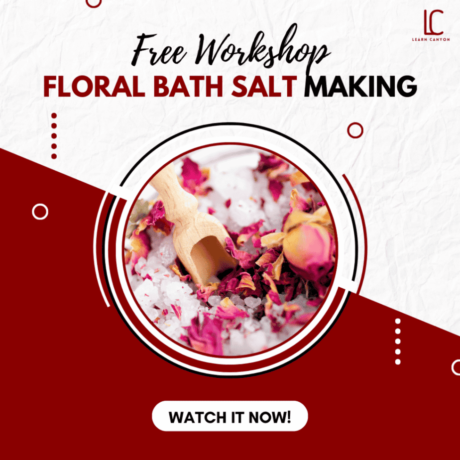 This FREE workshop is designed just for you. We’ll teach you how to professionally formulate Floral Bath Salts  a product that not only elevates your brand but also captivates customers with its spa-like experience.